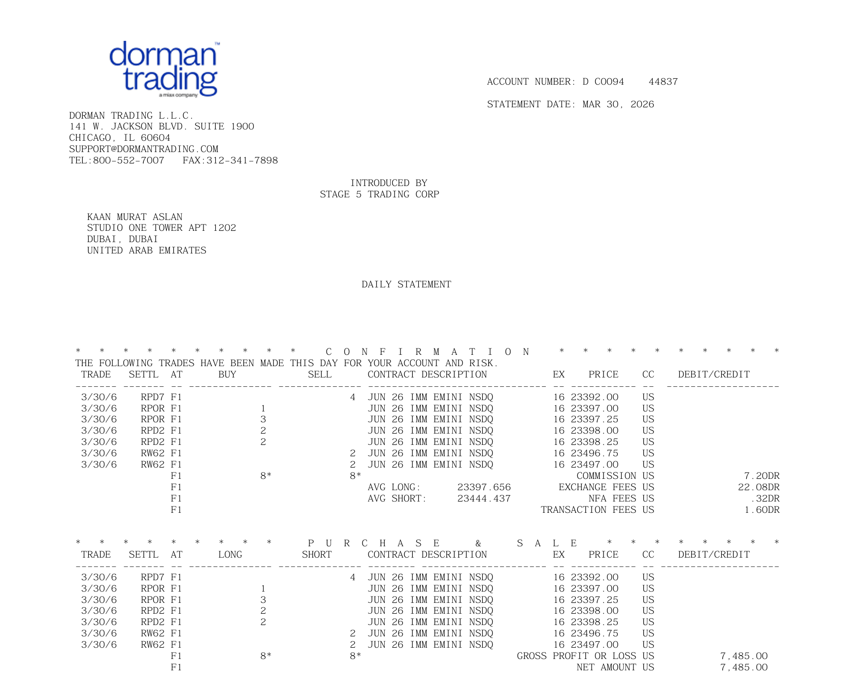 11 echte Broker Statements von Dorman Trading